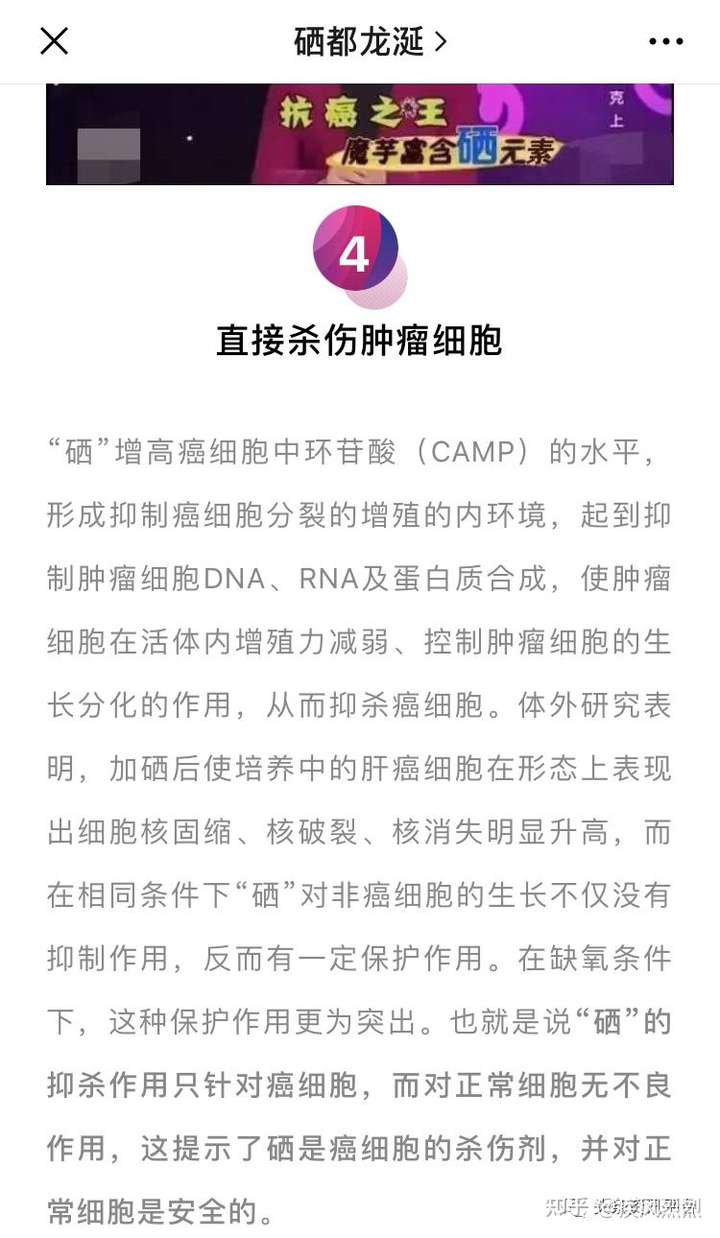 恩施作为富硒地区被称为“世界硒都”,我们在硒都龙涎的各种社交平台上也能看到其对硒元素的宣传:“直接杀伤肿瘤细胞”、“预防癌变”等宣传字眼令人目不暇接。