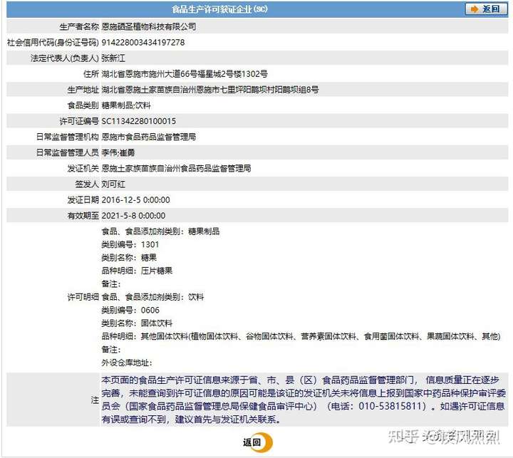 据相关产品资料披露,其生产许可证号为SC11342280100015,经查国家食品药品监督管理总局后,我们发现有关产品是由恩施硒圣植物科技有限公司生产的(也就是说,在硒都龙涎公司不再从硒谷公司采购产品后,便与硒圣公司合作,生产相关产品)。这些产品属于食品类别,那么,食品可以宣传治病吗?