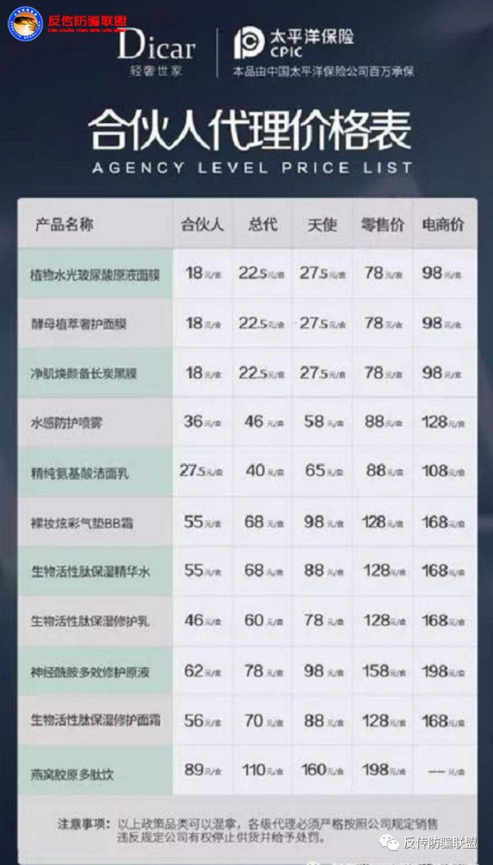 最后,我们再来关注一下轻奢世家的代理模式,据轻奢世家的代理商介绍,轻奢世家主打微商渠道,零售99元/3盒。目前,轻奢世家有4个代理商角色身份,分别是:天使、总代、合伙人、股东。