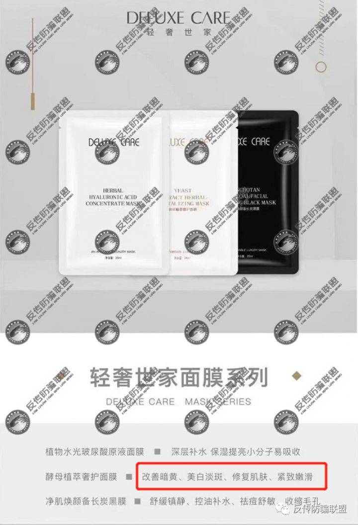 据一位代理商发布的轻奢世家面膜系列的介绍图显示,其中的一款酵母植萃奢护面膜能改善暗黄、美白淡斑、修复肌肤、紧致嫩滑。