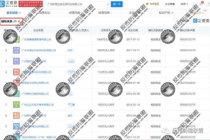 值得一提的是,据企查查显示,与广州娇美庄园公司公布于企查查上的联系电话相同的企业有共29家。