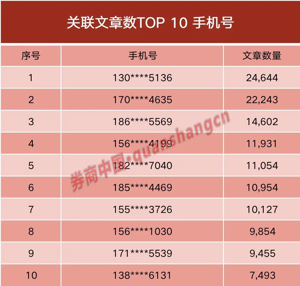 特征二:联系方式高度重合,同一手机号最高出现2.46万次
