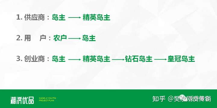 八层:1、皇冠岛主 (最初100万: 30+30+30+...) (必须发展三条主线,无数太阳线,每条主线五百万,复购业绩每条线五百万以上才自动成为)