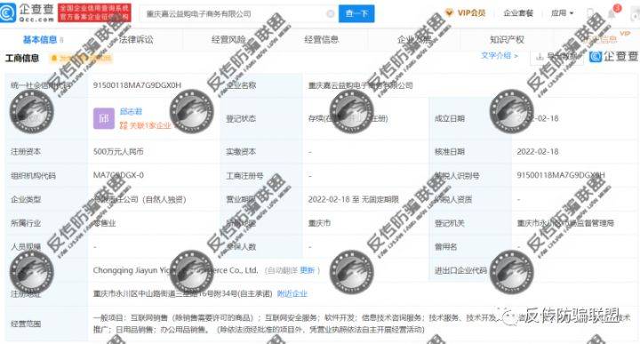 据企查查显示,重庆嘉云益购电子商务有限公司成立于2022年2月18日,位于重庆市永川区中山路街道三星路16号附34号(自主承诺),法人代表邱志君任执行董事兼总经理,持股100%,何贵川任监事。
