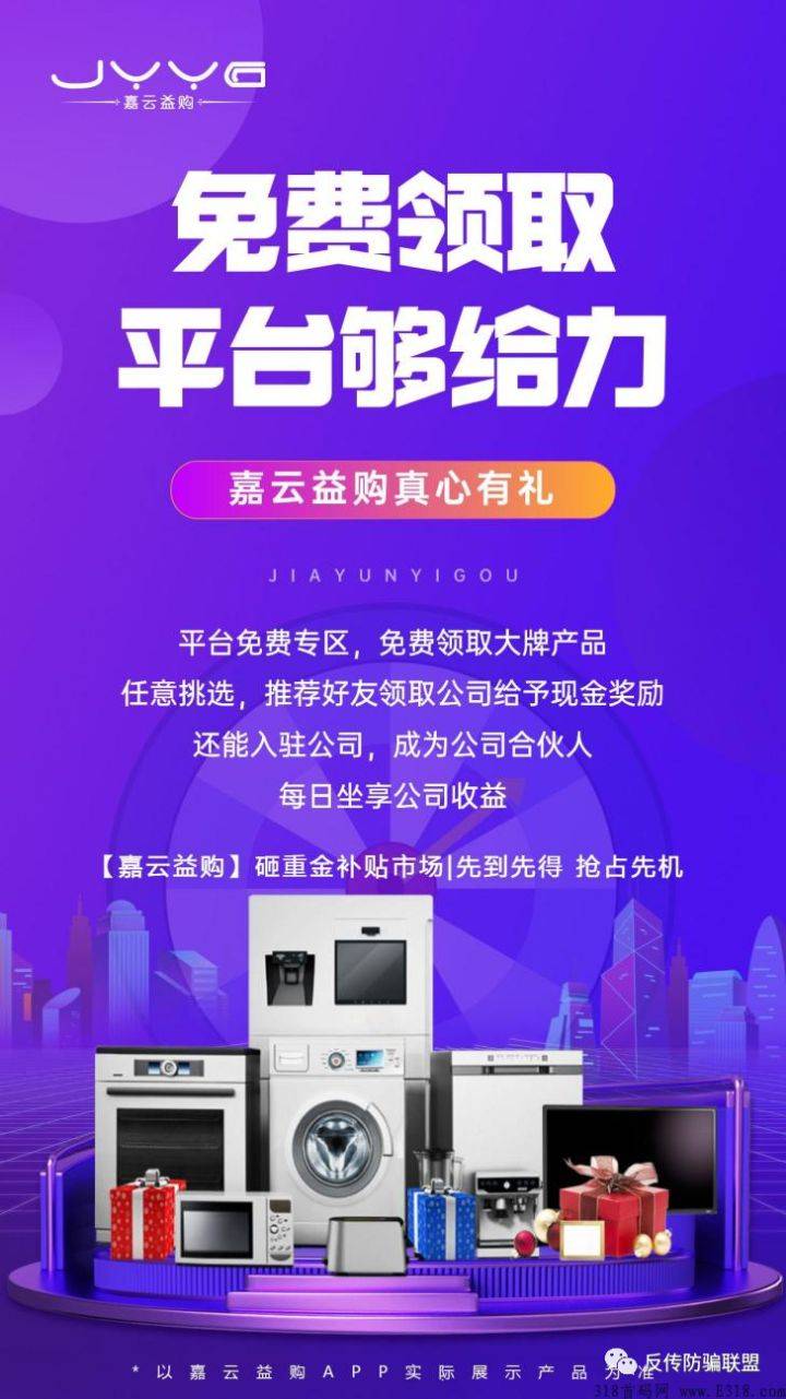 反传防骗联盟在此提醒广大投资者,要谨慎投资,不要相信嘉云益购平台所谓“人人做股东、每日坐享公司收益”的“躺赚”项目,一但平台关网跑路,后加入的用户只会血本无归。
