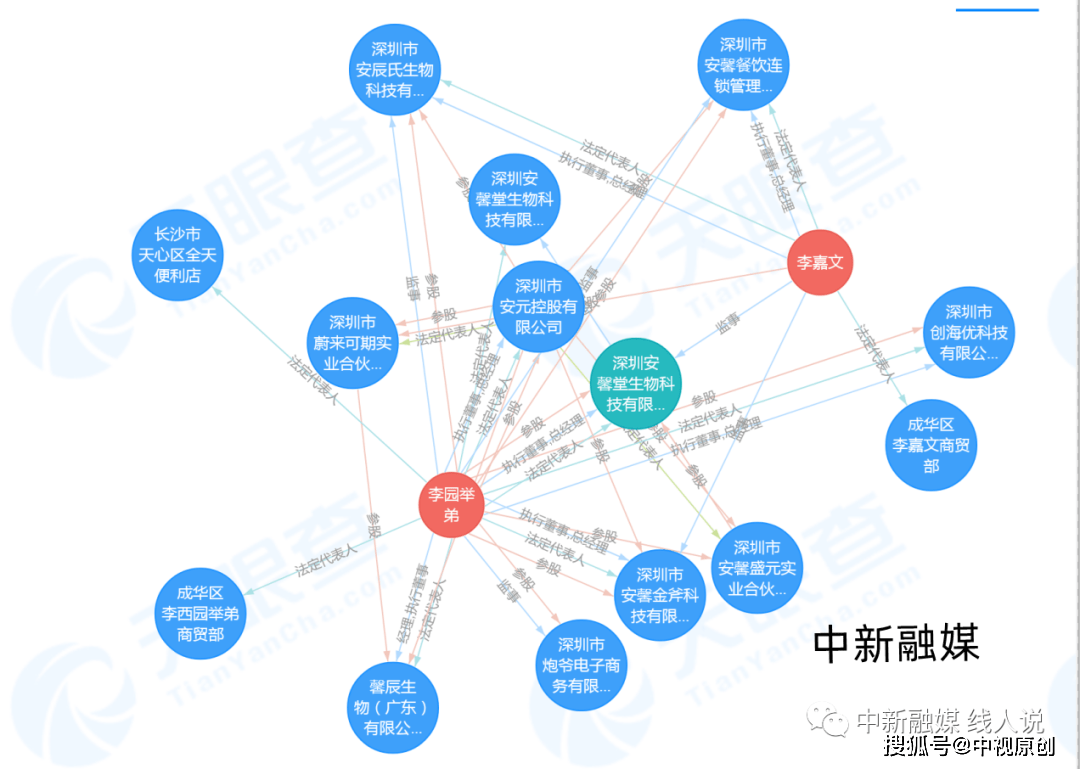 据天眼查显示,深圳安馨堂生物科技有限公司成立于2015年3月27日,注册资本为1250万,李园举弟担任法人。