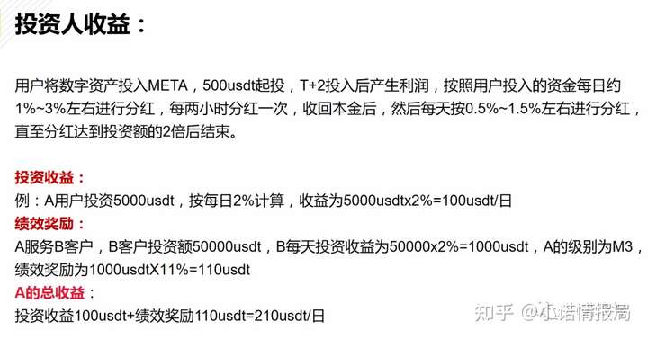 总结:对于META数字资产投资基金项目没有什么太多说的内容,毕竟是简单粗暴的分红盘,与之前小诺曝光的“懒人理财”、“艾德卡”没什么区别。所以对于这种项目希望粉丝们还是远离,你无法预测到操盘手什么时候收割,所以不要冒险!