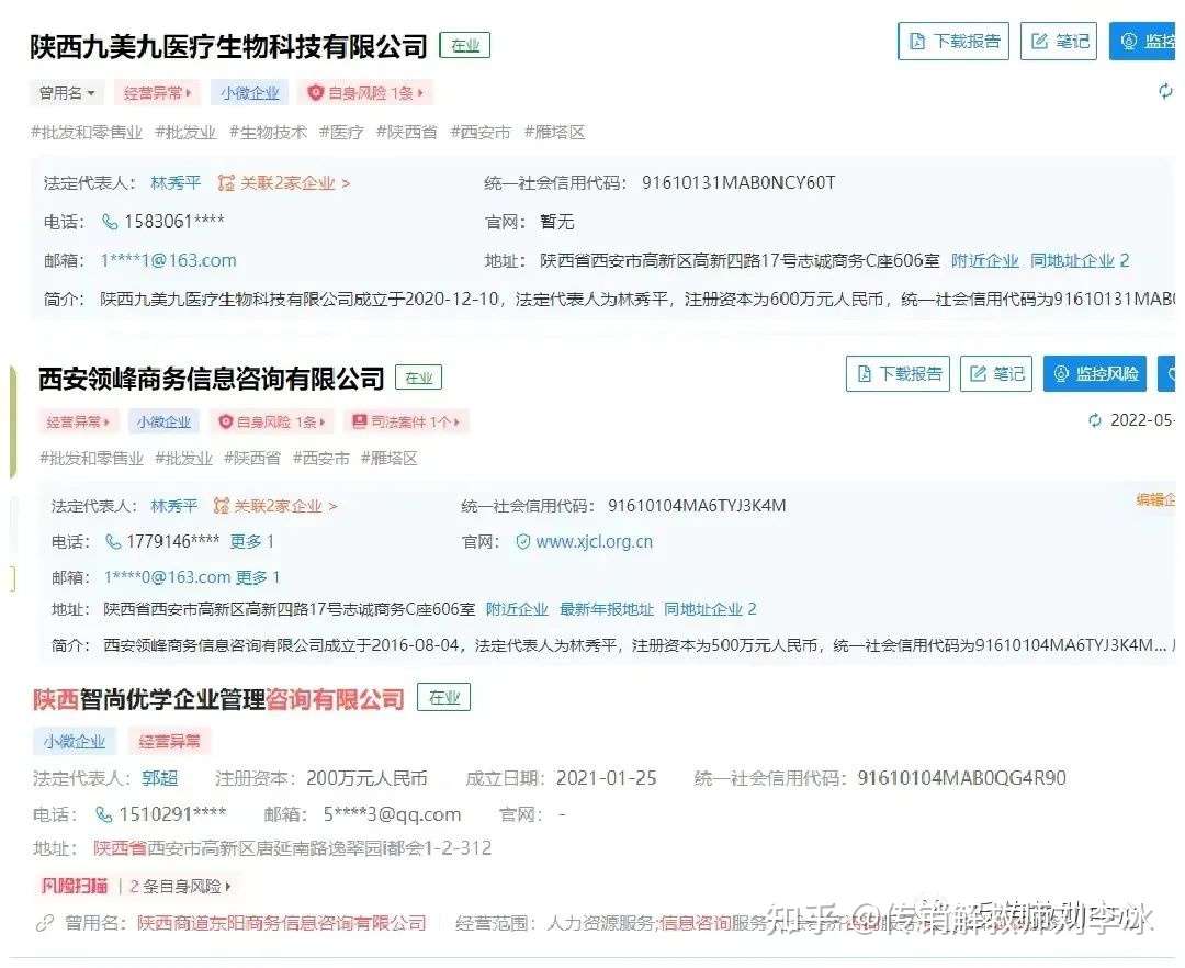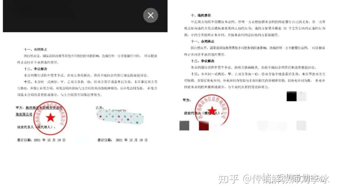 在看这里签署合同的主体一个是陕西商道东阳商务信息咨询有限公司一个是西安领峰商务信息咨询有限公司。由此我们通过企查查查到了三家企业。