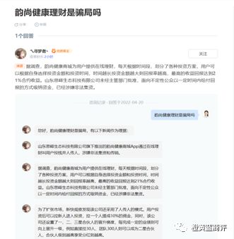 百度问一问中也有网友提问“韵尚健康理财是骗局吗”?