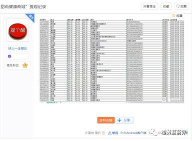 此外,还有网友晒出“韵尚健康商城提现记录”。