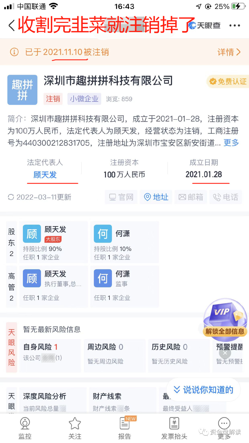 从注册到注销还不到十个月的时间!