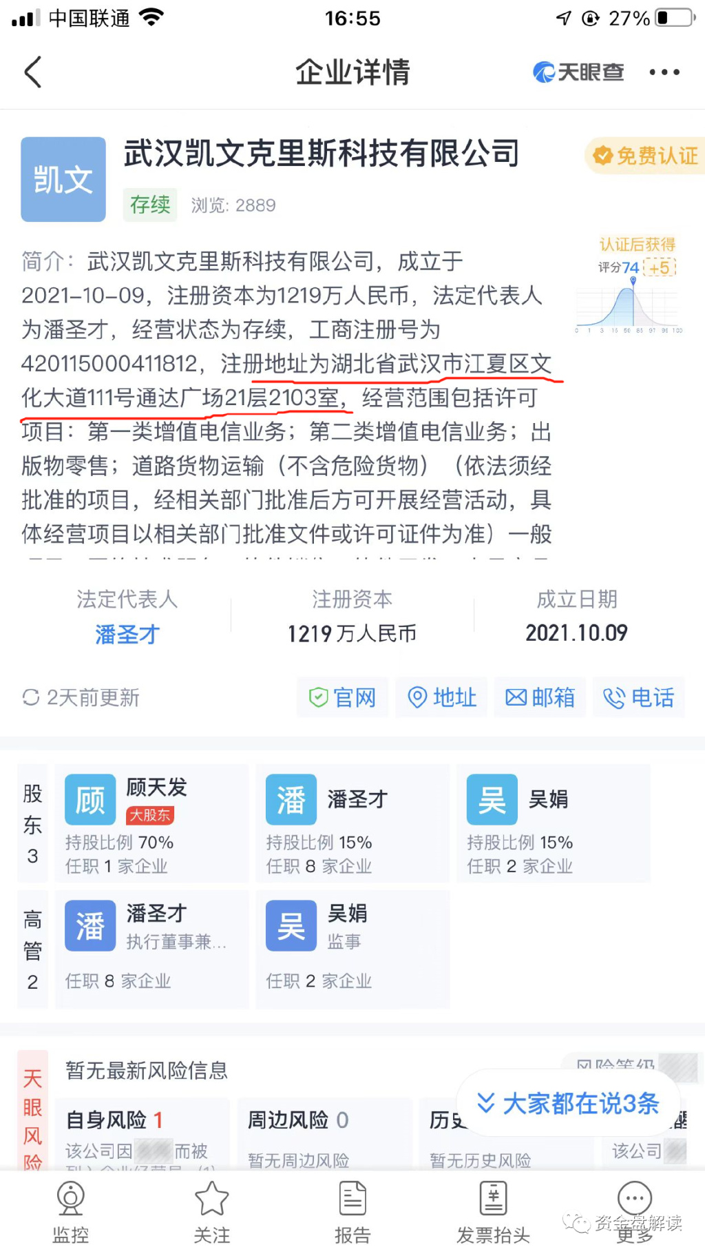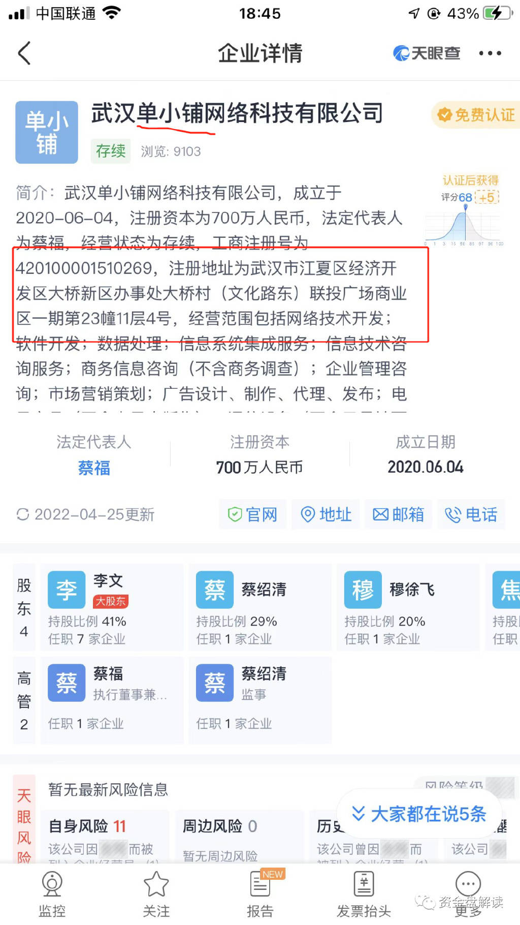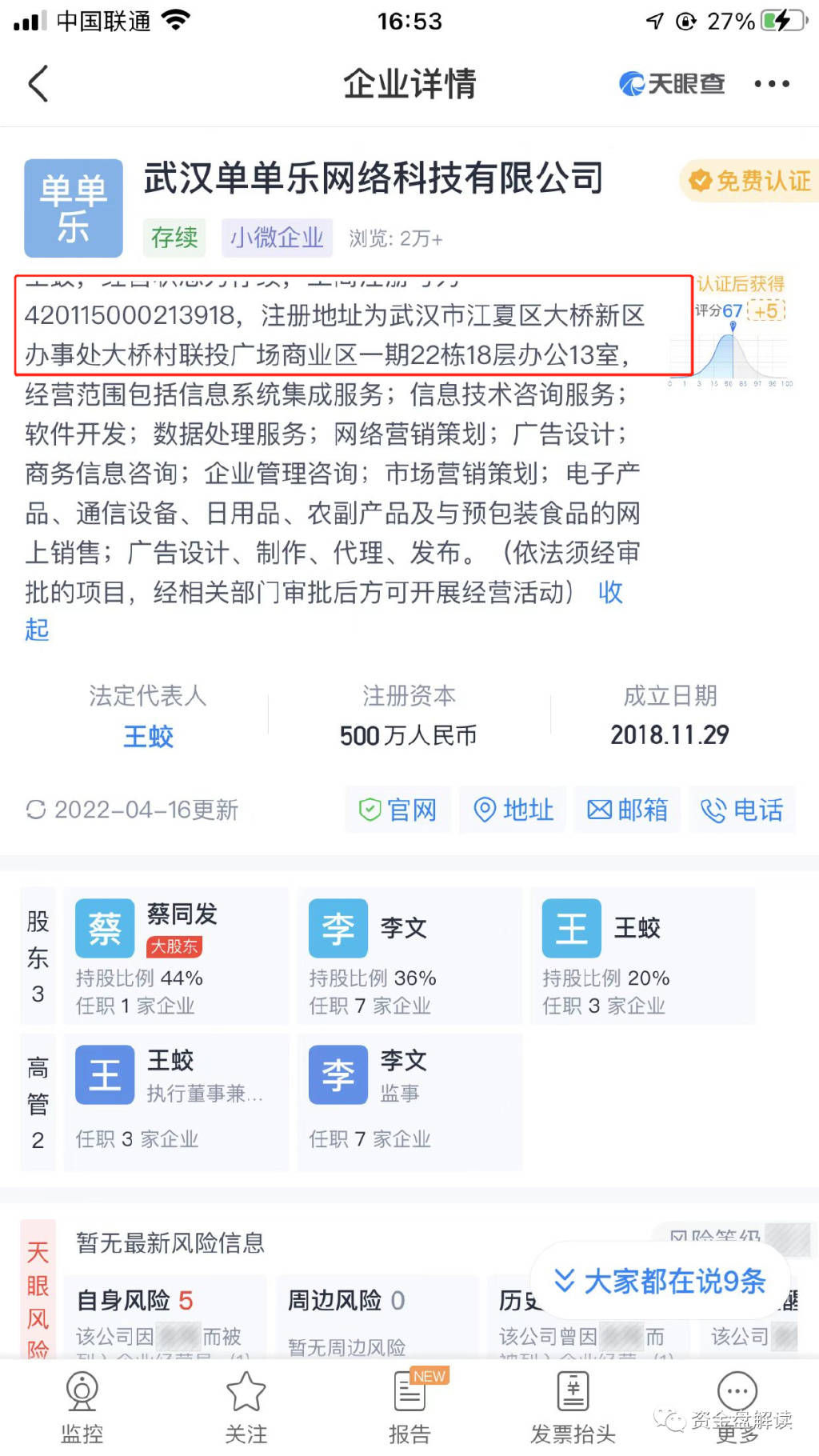 目前能查到的资料显示,这个空壳公司已经被武汉市江夏区市场监督管理局 列为 经营异常名录;实际上就是跑路了!