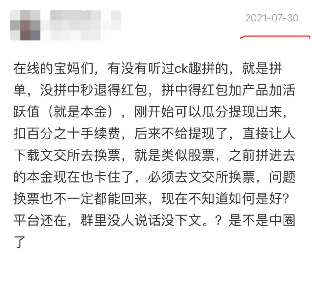 于是找了个理由,让你们把你们在ck趣拼平台余额,兑换成另外一个平台的资产,而这个平台也是他们自己弄的,再把你们兑换过来的资产给你们缩水掉。