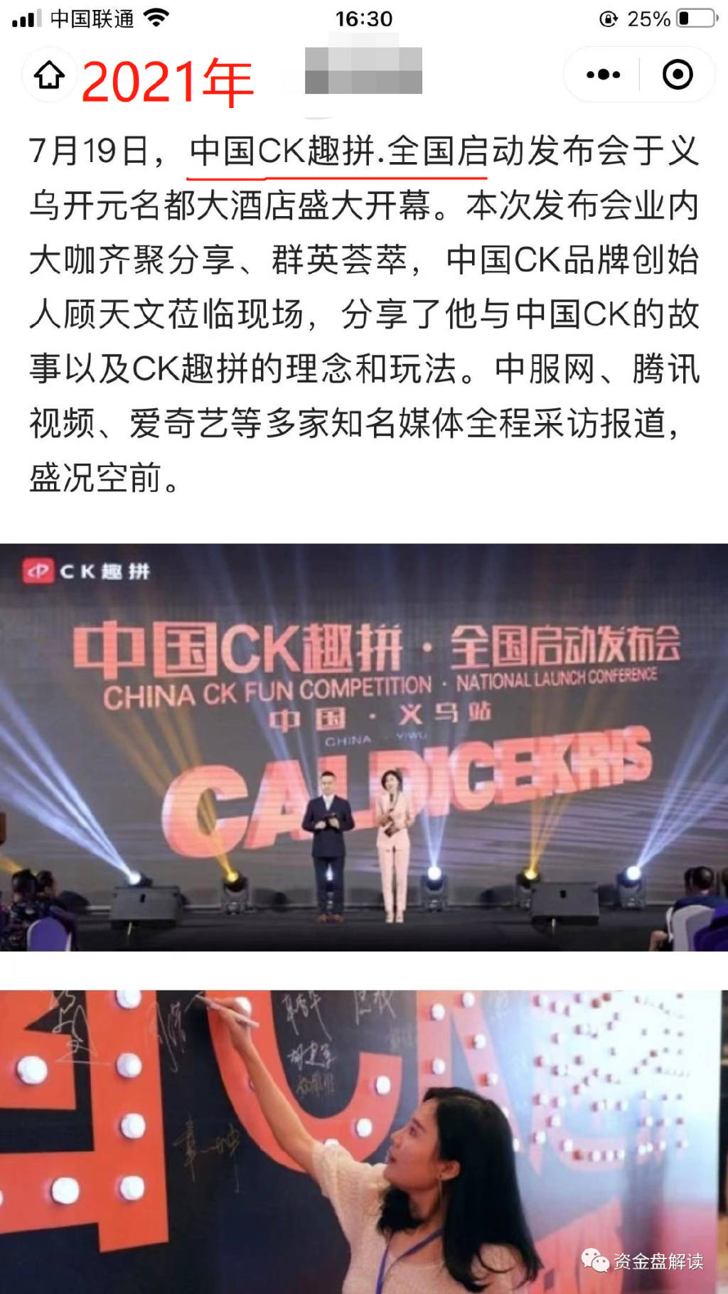 单小铺被查后,这帮人贼心不死,于是2021年初, 这个叫:顾天发 的人注册了一家名叫 “深圳市趣拼科技有限公司” 的空壳公司,也就是ck轻奢会的前身, ck趣拼的主体公司,来进行传销诈骗活动!