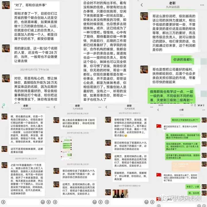 在11月30日邀请我进了一个两百人左右的学海无海-乐活群,群里大多数是他们一起的托,每天积极互动打卡分享,跟打了鸡血一样在群里大肆宣扬着所谓的正能量以及开直播(提前录制好的)托们的积极互动带动群里氛围,会发一些产品销售转账截图。按照他们的套路剧本演绎,并说有人要跟着做事业,人设哥靳捷说连夜赶写招商提案要在全国招收50名代理,3万7万13万均不同的级别,在群里转账截图报名,先报先得。在群里他们还发跟央视签约照片还有明星代言的视频来笼络人心,一步步诱导受害者们投资成代理…也承诺他们市场部会把货嫁接在我们当地的药店,美容院,商场等场所,这些场所拿货也只能通过代理拿货。