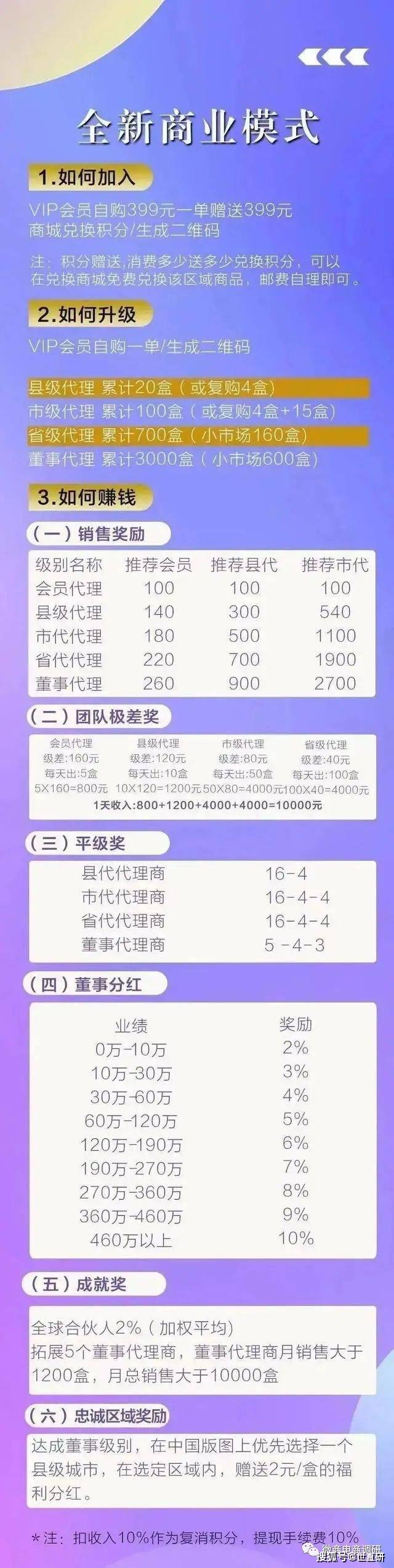 据了解,百奥森医药旗下有多个商标,包括视丹明、甄视康、百舒明等,而这些都因多级分销模式被媒体质疑涉嫌传销。以甄视康为例,需399元购买甄视康产品后生成二维码进行推广,根据销售/拿货量分为“县级、市级、省级、董事代理”,分为团队级差奖、平级奖、董事分红、成就奖、忠诚区域奖励等奖励机制。