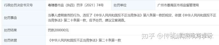 不久前,广州今朝健康产业科技有限公司还曾因不正当竞争行为遭到广州市番禺区市场监督管理局罚款20万元的行政处罚。决定书文号:粤穗番市监(执四)罚字〔2021〕74号。