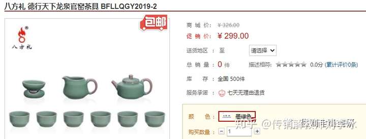 再比如“八方礼德行天下龙泉官窑茶具 BFLLQGY2019-2”,该产品在城联优品APP内的售价为1999元。