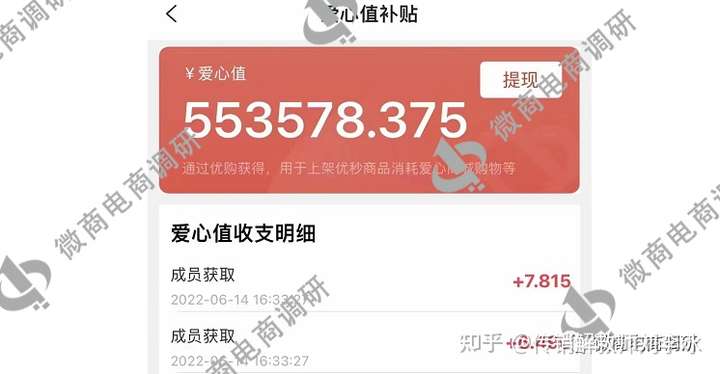 关于制度细节,据城联优品APP内部的《分享规则》(1爱心值等于1人民币)显示如下: