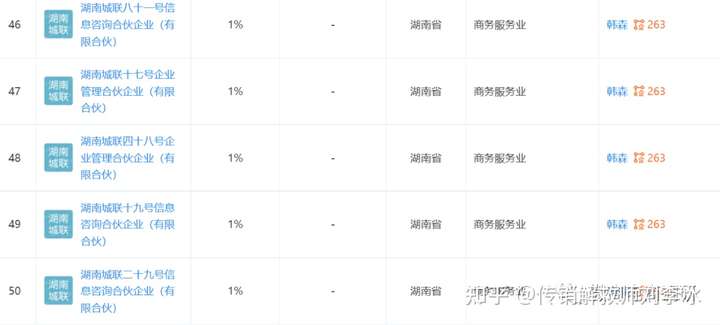 据企查查显示,截止2022年6月下旬,由韩森担任法定代表人的企业已达到了接近三百家,不过其中百分之九十以上的公司的成立时间都集中在2022年6月,而企业类型基本都是这种形式的: