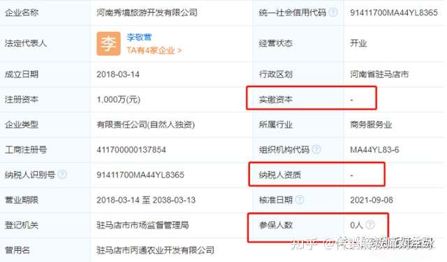 从其宣传可知,芳香小镇的主体公司是河南秀境旅游开发有限公司,这个公司实缴与参保人数都是0,这种空壳公司居然打着乡村振兴的旗号,真是让人大跌眼镜。