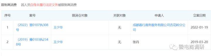 当然,在此期间,王少华也被法院出示过限制消费令。