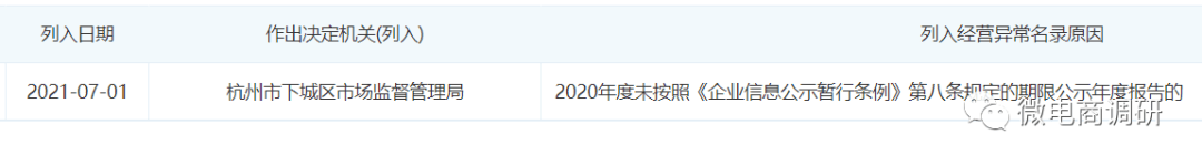 眼下,王少华还在杭州绿菠菜网络科技有限公司扮演着股东的角色,不过该公司已因未按照《企业信息公示暂行条例》第八条规定的期限公示年度报告,而被杭州市下城区市场监督管理局列入企业经营异常名录,且至今仍未被移除。