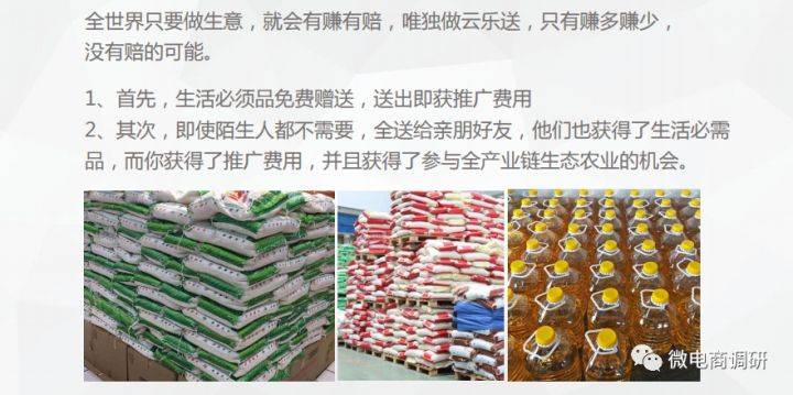 文章的最后,我们再来关注一下云乐送推行的奖金制度该如何解读。2022年4月12日,云乐送正式启动市场,关于奖金制度,据推广人员介绍,“云乐送的模式就是免费送,每个微信号可以免费领一袋面粉,每袋面粉2kg,每送出去一袋,代理商可以赚50元、60元、70元,三个代理级别对应不同利润,此外,代理商还能拿到推荐奖、平级奖、级差奖等。公司总共送出去2500万袋打造品牌,让更多中国老百姓喜欢上延麦面粉”。虽然该推广人员指出云乐送是三个代理级别,不过有关奖金制度却涉及到了五个级别。