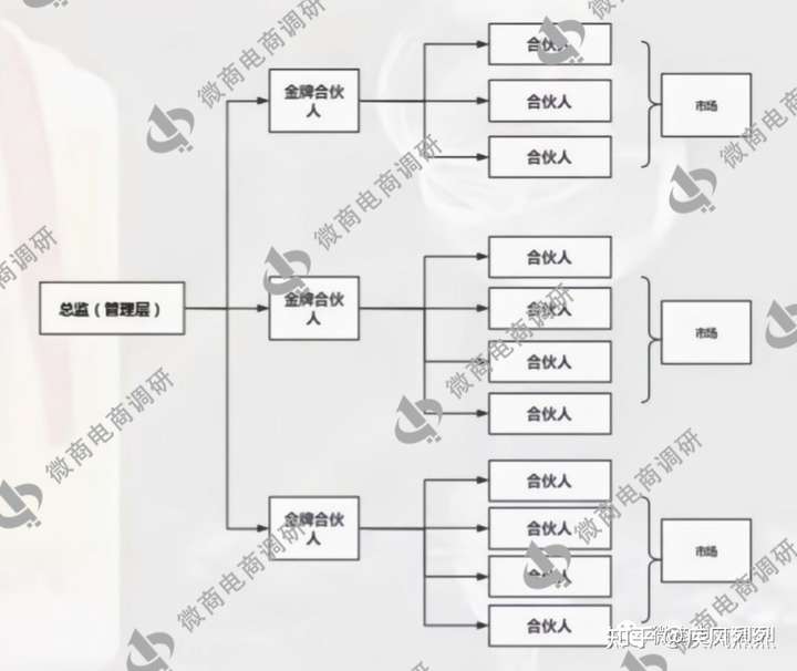 总监:直推三个金牌合伙人或一次性购买产品金额达到1794元可成为总监。总监除了可以获得直推收益以外还有金牌收益,总监推荐的合伙人升级为金牌合伙人,总监可获得30元/人的金牌收益,总监推荐的金牌合伙人升级为总监,原总监可获得300元/人的金牌收益。总监还有额外的总监管理费,即总监伞下团队所有人售出商品,总监都可以获得收益。