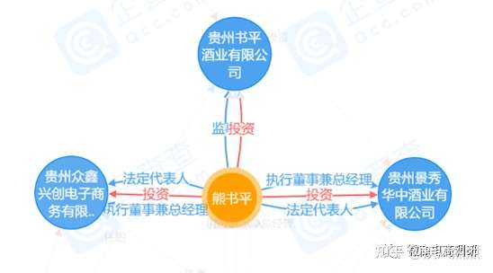 熊书平共和三家企业有关联,他不仅是贵州书平酒业有限公司的实际控制人,还投资了贵州众鑫兴创电子商务有限公司,控股66%并担任法定代表人、执行董事兼总经理;投资了贵州景秀华中酒业有限公司,控股94%并担任法定代表人、执行董事兼总经理。