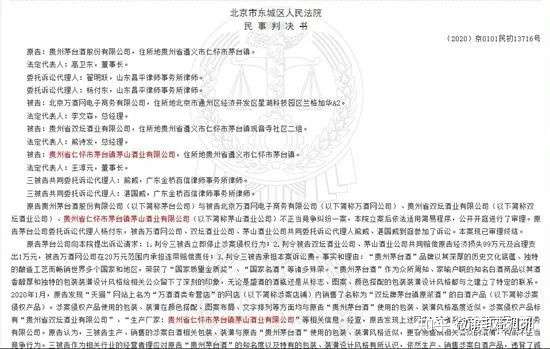 2021年,贵州茅台酒股份有限公司又向法院提起诉讼请求,请求判令北京万酒网电子商务有限公司、贵州省双坛酒业有限公司和贵州省仁怀市茅台镇茅山酒业有限公司立即停止涉案侵权行为;判令被贵州省双坛酒业有限公司和贵州省仁怀市茅台镇茅山酒业有限公司共同赔偿经济损失99万元及合理支出1万元,北京万酒网电子商务有限公司在20万元范围内承担连带赔偿责任。