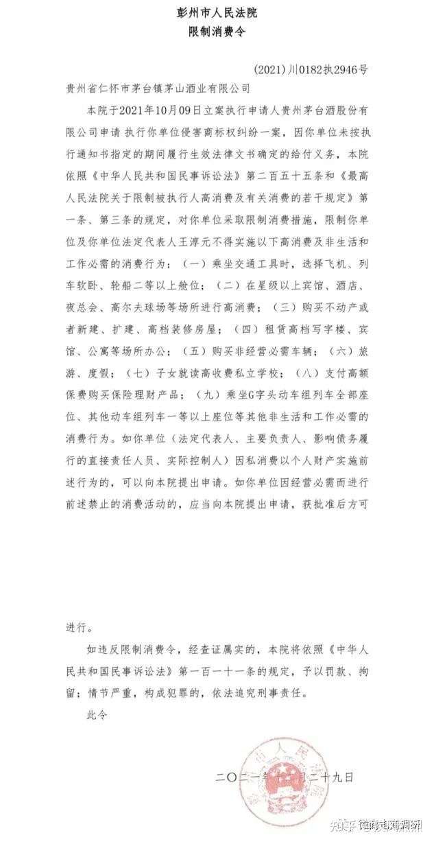 但贵州省仁怀市茅台镇茅山酒业有限公司却并未履行裁决文书判令的给付义务,因此两次被法院限制高消费并被列为失信被执行人。