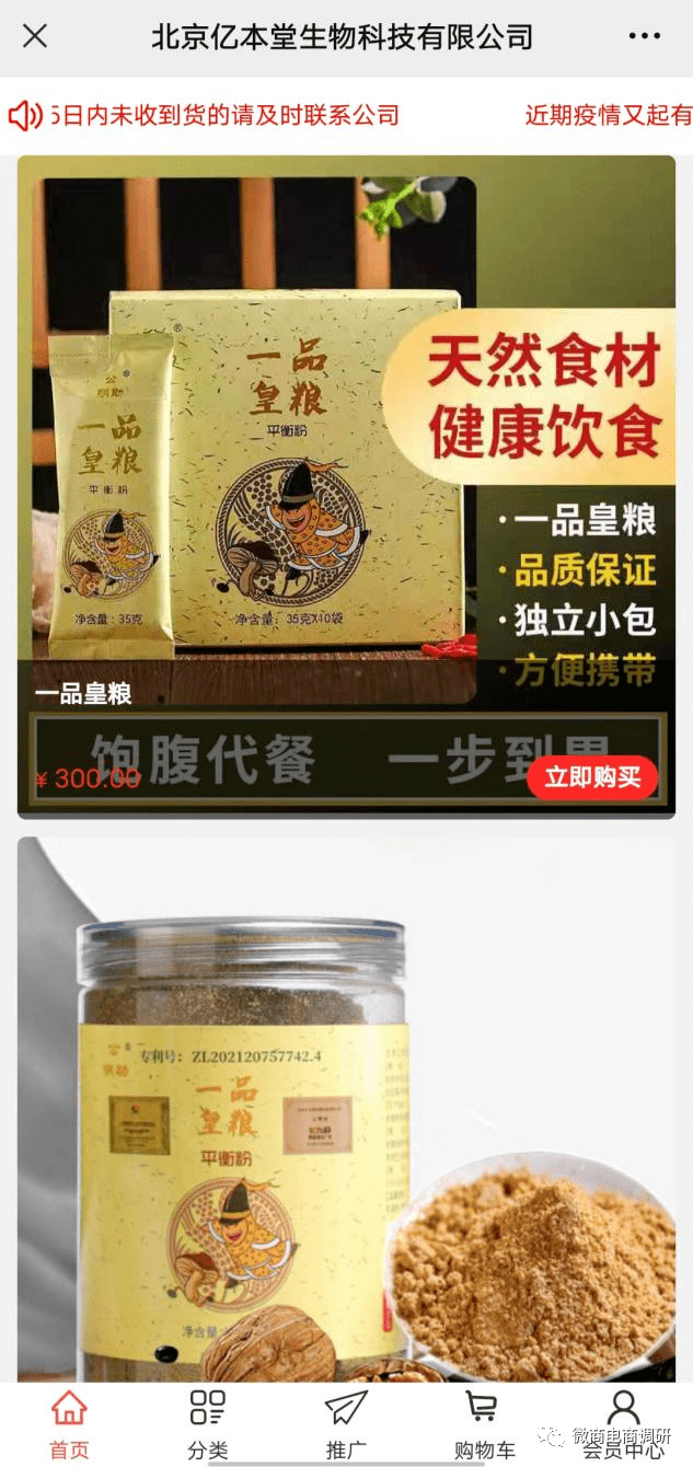 恒星商城的主推产品一品皇粮平衡粉,在恒星商城的售价为两盒1360元,每盒680元,而该产品在一品皇粮官方商城的售价仅为300元/盒。