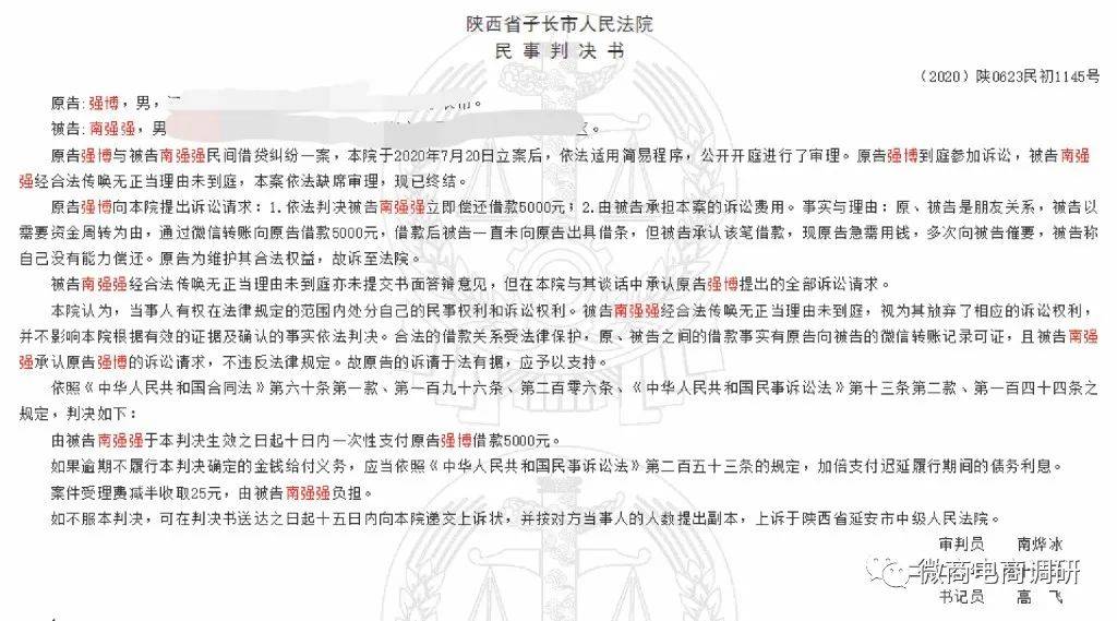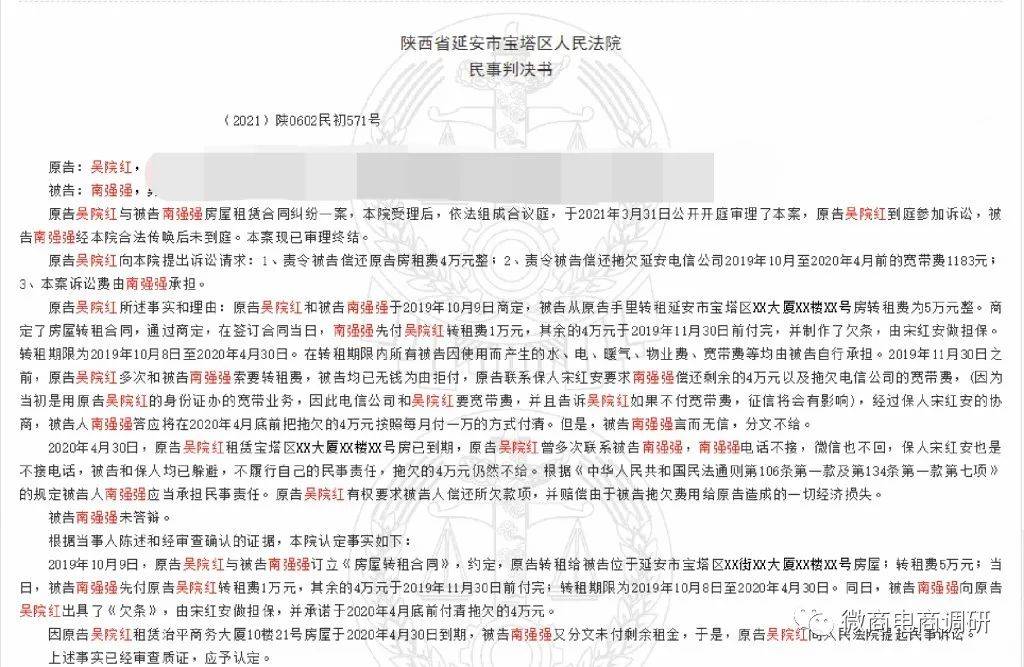 值得注意的是,南强强曾因租赁合同纠纷案由和借贷案由被人起诉3次。2020年7月20日,强某向法院提出诉讼请求依法判决南强强立即偿还借款5000元。事实与理由是强某与南强强是朋友关系,南强强以需要资金周转为由,通过微信转账向强某借款5000元,借款后南强强一直未向强某出具借条,但南强强承认该笔借款,后来强某急需用钱,多次向南强强催要,南强强称自己没有能力偿还。强某为维护其合法权益,故诉至法院。最终法院判决南强强一次性支付强某借款5000元。