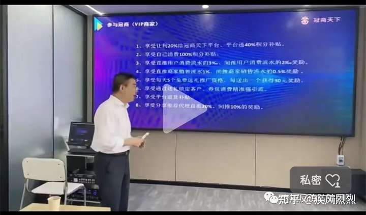 据某参加过冠商天下经销商会议的网友反馈,该公司通过“中国合伙人”这个活动,邀请新人和内部成员进行资源分享和对接,并将新人发展成会员。他们会搞一些高大上的项目。