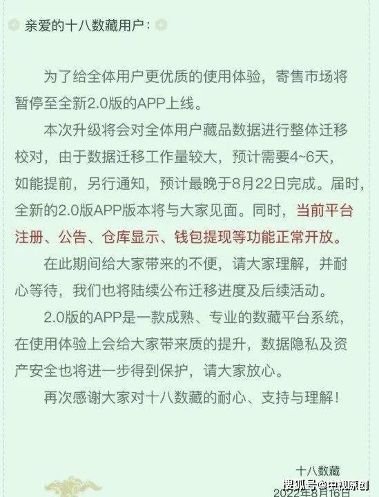 今天“十八数藏”发了一个公告,具体公告内容如下: