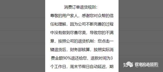 此外,众帮联合还设置了退出机制,如果会员不想做了,可以选择一键退出,根据《消费订单退货规则》显示,会员点击一键退货后,经财务部核算,平台会按照实际消费金额90%退还。