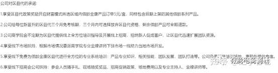 调查发现,松奇丹清如今推行的模式,跟以往的佰龄金康时期并没有太大差别,眼下,松奇丹清的代理商还有机会成为区域代理,区县代理的门槛为50盒,市级代理的门槛则是要求推广5个区县代理。区县代可以拿区域内5元/盒的奖励(公司发往该县区的订单,每单均有5元提成),市代可以拿区域内3元/盒的奖励。关于区域代理的具体权益,松奇丹清的代理商还提供了如下资料进行了进一步的解析: