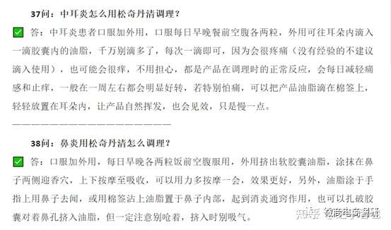 另外,在公众号“科建麟佰龄金康小助手”发布的《松奇丹清【佰龄金康】百问百答》中,这款产品也被指出对于鼻炎和中耳炎等多种疾病具有治疗效果。