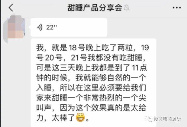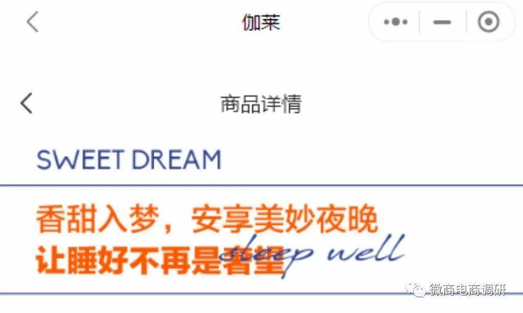 正如甜睡的产品名称所显示的那样,该产品最大的卖点就是具有改善睡眠的功效,湖南伽莱商贸有限公司为微信小程序“伽莱”的认证主体,在官方小程序的包装下,这款产品也果然具有了相应作用。