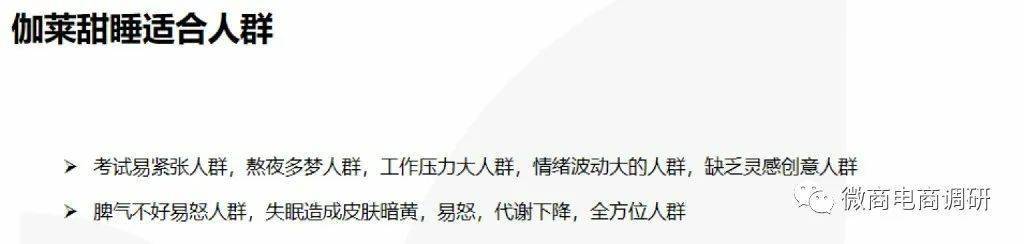 另外,在经销商提供的关于甜睡的招商PPT中,这款产品还被标示出了适合特定人群。