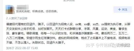 然而李女士的丈夫得知该事后对该项目很是怀疑,于是反对李女士代理该修正安媞尔的事业。而也就在此时,李女士发现在自己交钱签订合同后,自己的微信已被田涵升拉黑。与此同时,李女士也注意到,在网上有不少网友的遭遇与其如出一辙,都是被田涵升等人的诱导下充值成代理,最后交完钱玩失踪。李女士这才恍然大悟,知道自己是被骗了。