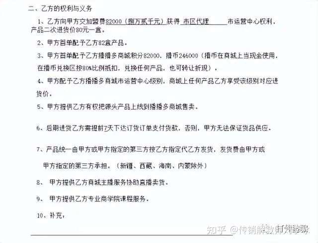 推荐的代理人数越多其获得的推荐奖励也就越高。此外,修正安媞尔方面称,为了帮助代理营销推广,产品会在电视上大力宣传,并且到当地的美容院、洗浴中心等地方,免费帮代理推广,并且嫁接她们的ID号。届时不用花费时间,直播链接发出去就能赚到钱了,是个稳赚不赔的生意。李女士很是心动,于是转账两次,共掏了8.2万的代理费,签了合同,成了市运营中心的一员。