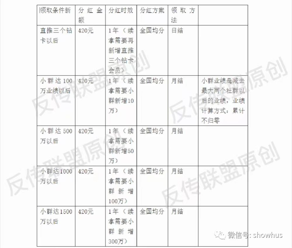 3、上线从直接或间接发展的下线的销售业绩中计提报酬,或以直接或间接发展的人员数量计提报酬或者返利。