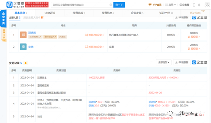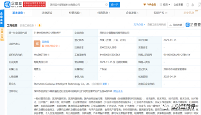 据企查查显示深圳谷小御智能科技有限公司,成立日期2021年11月15日,注册资金2000万元人民币,实缴资本元,参保人数人,法人郑建国,股东李腾。