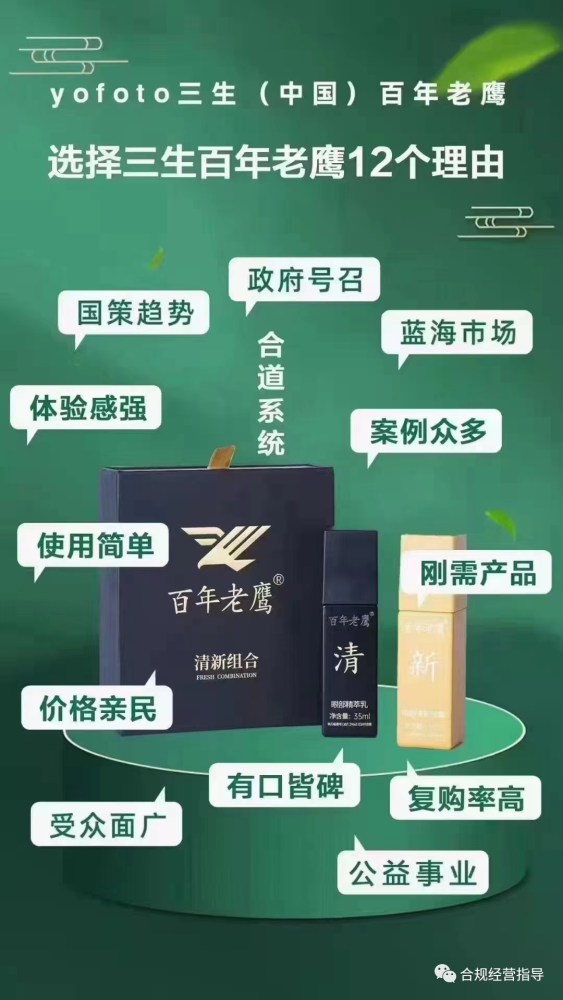 我们的身份是:三生《中国》百年老鹰眼康产品的销售人员