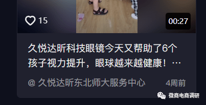 类似案例可谓不胜枚举,视频号“视保刘海涛”(如前文所述,久悦达昕的市场招商总监的名字正是刘海涛)也发布过久悦达昕可以改善视力的案例。