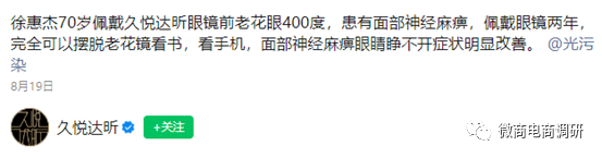 更有甚者,据久悦达昕的官方视频号显示,还有人曾患有面部神经麻痹、眼睛睁不开等症状,戴上久悦达昕的眼镜后也得到了显著改善。