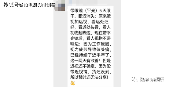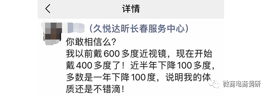 当然,在推广人员的朋友圈中,也少不了关于该产品可以提升视力、降低度数的案例:
