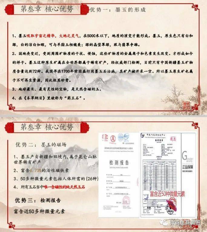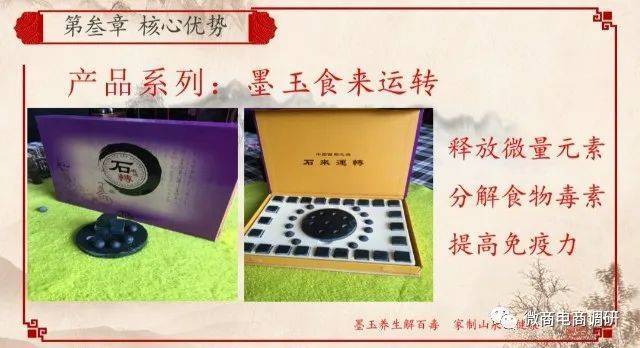 据宣传,墨玉保健锅、墨玉“食来运转”产品有保鲜、解毒、防腐、去污的功效,用于煮水可以改变水分子结构,对水进行净化、矿化、磁化、转化成小分子团水,达到人体需要的碱性水要求,自动调节饮水PH值,改善亚健康体质;用于炒菜可以有效去除农药残留,久煮不烂,久翠不衰,原汁原味,香嫩可口;用于炖肉可以有效分解肉类激素,汤美肉嫩,排毒美颜,返璞归真,去腥提鲜。